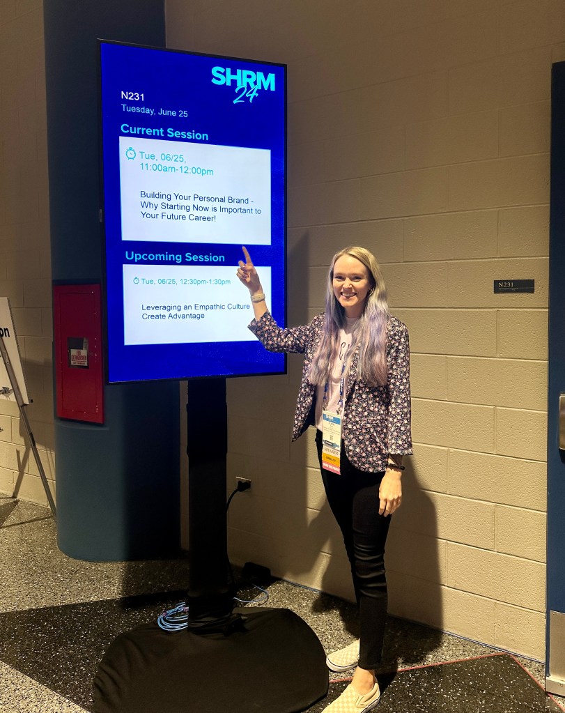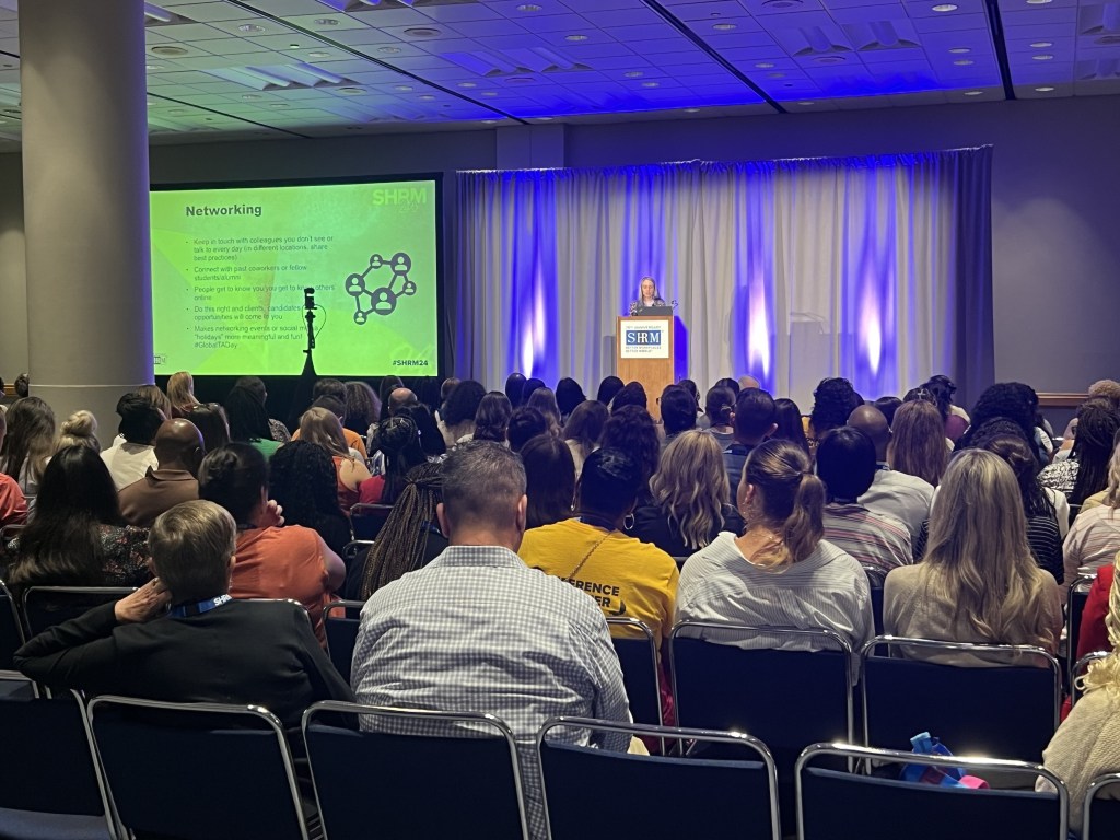 2024 was incredibly fun on the speaking front. I got to step into new roles and onto new stages with new organizations! The biggest accomplishment for me was hitting the stage at both SHRM Talent in Las Vegas and SHRM24 in Chicago. I had a Spotlight Stage and Concurrent session at each! At SHRM Talent my sessions were Recruiting Best Practices (Play the Long Game!) and Elevate and Uplift the Next Generation of HR Leaders for the spotlight and concurrent stages respectively. At SHRM24 I got to do Elevate and Uplift the Next Generation of HR Leaders as the spotlight stage (cutting it down was so hard lol) and Building your Personal Brand, Why Starting Now is Important to Your Future Career as the concurrent session. My concurrent session at SHRM24 had the session full sign out front! I was so so excited to meet so many new people who found my content inspiring and helpful. I met so many HR professionals eager to advance their careers. I love sharing my insight and experience on building a personal brand, building relationships and credibility at work, moving up, networking, and using social media to your advantage.